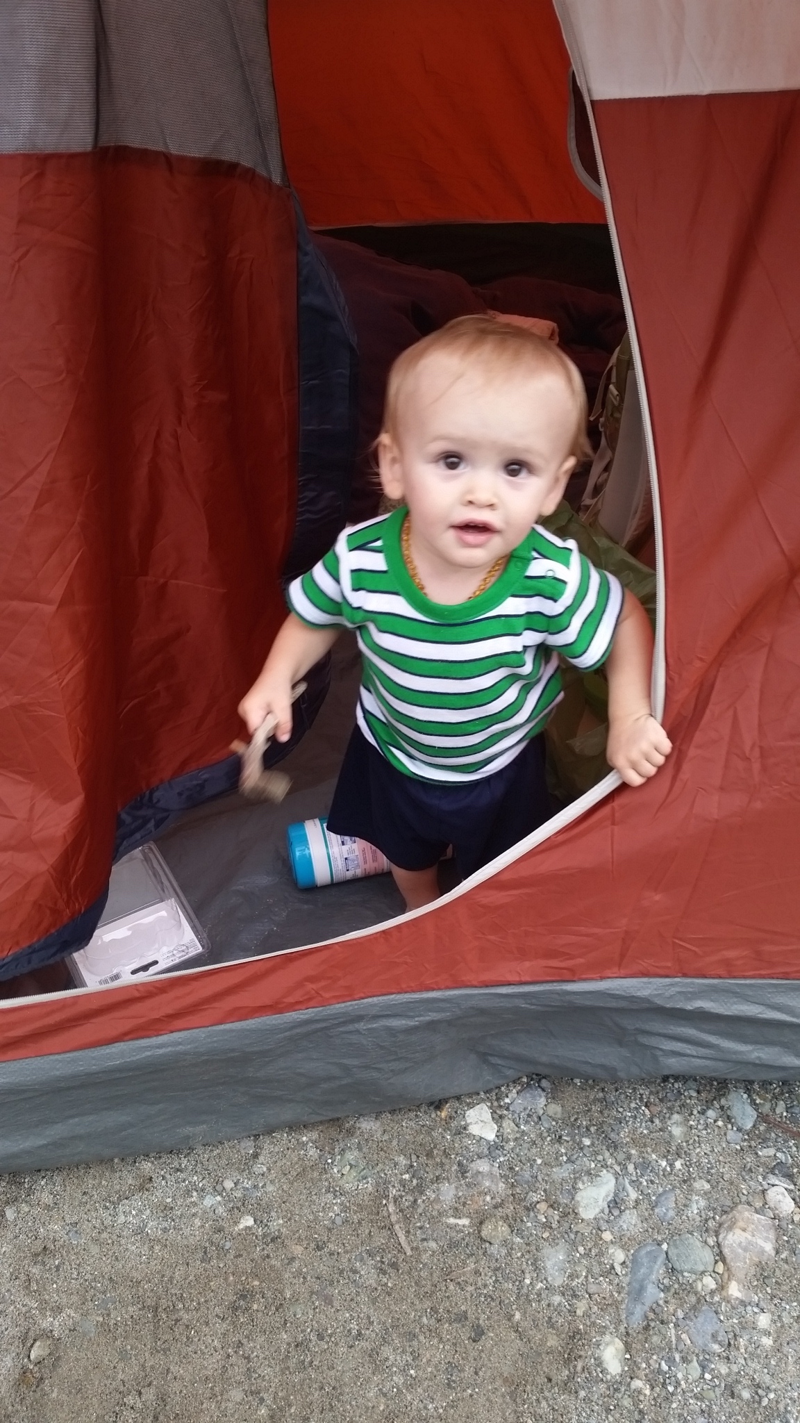 (Elijah Coming out of the tent to play)