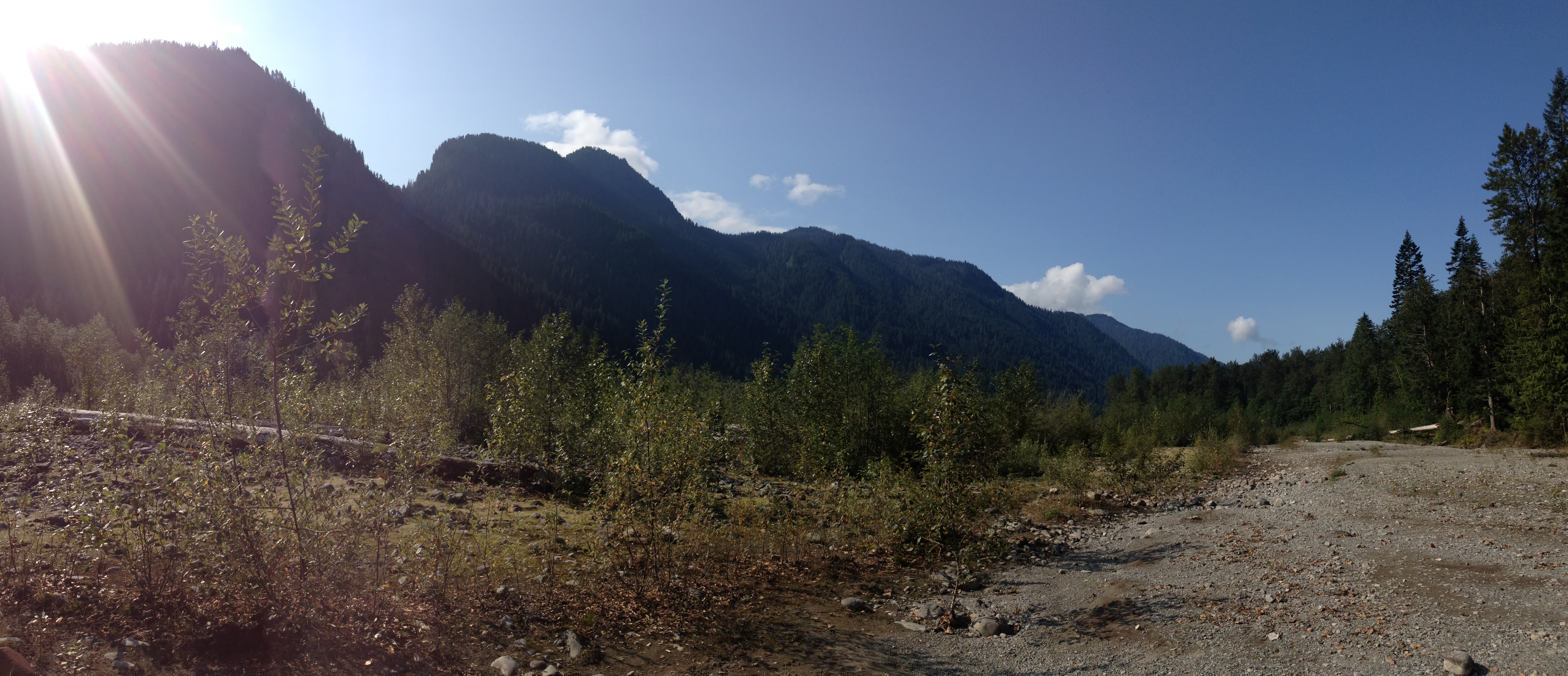 So, we keep driving up the road until it ended. Other campers were there. There as an outhouse, and a river nearby, and wide open spaces.